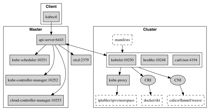 kubelet 相当于 Master 的 agent,负责和 Master 的通信,维持 Pod/容器的生命周期,同时确定其符合 YAML 所定义的 PodSpec,其中包括关于 Volume(CVI)和网络(CNI)的管理。 |
