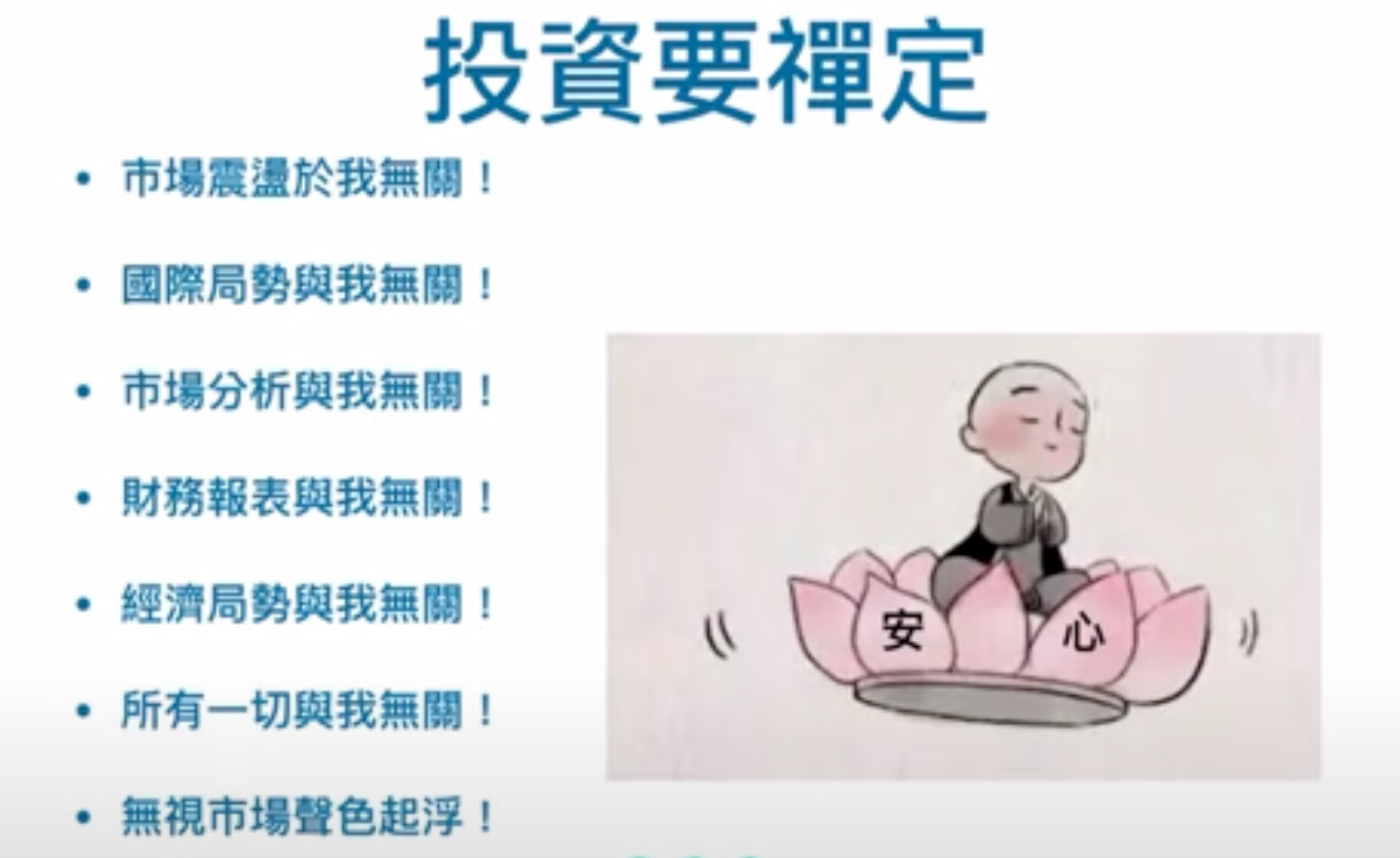 價值一億元的投資講座 是你必须、值得、反复观看的影片,或者等你股市中头破血流需要顿悟的时候,但早一天领悟早一天行动: